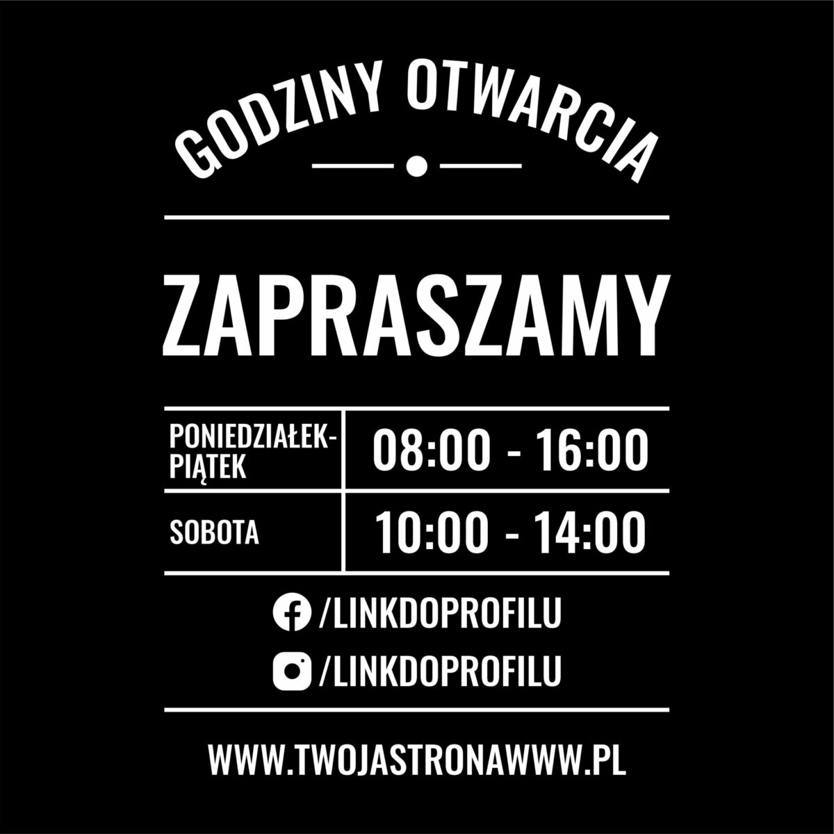 Naklejka z godzinami otwarcia wykonana z folii Oracal to produkt, który łączy w sobie estetykę, trwałość i funkcjonalność. Jest to idealne rozwiązanie dla firm, które chcą w profesjonalny sposób informować swoich klientów o godzinach dostępności usług. Dzięki wysokiej jakości materiałom oraz możliwości pełnej personalizacji, naklejka staje się nie tylko narzędziem informacyjnym, ale również ważnym elementem wizerunku Twojej firmy.
