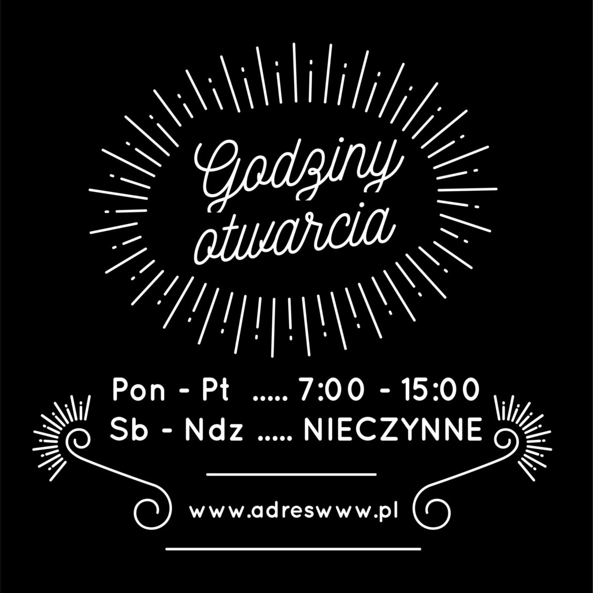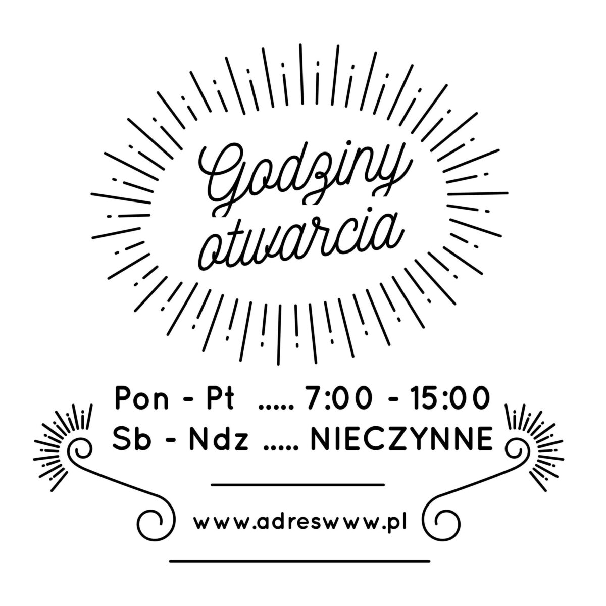 W procesie personalizacji uwzględniamy wszystkie szczegóły, takie jak konkretne godziny otwarcia, które mają zostać umieszczone na naklejce, a także ewentualne dodatkowe informacje, jak dni wolne, święta, godziny przerw czy media społecznościowe. Dodatkowo, istnieje możliwość dodania logotypu firmy (tylko w przypadku przesłania logo w wersji wektorowej), co sprawia, że naklejka staje się nie tylko informacyjnym elementem, ale także częścią identyfikacji wizualnej firmy. Każdy projekt jest dokładnie konsultowany z klientem, aby zapewnić, że spełnia on wszystkie oczekiwania i jest zgodny z wizerunkiem firmy.
